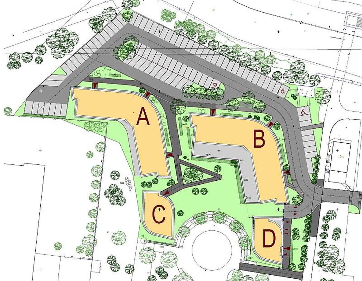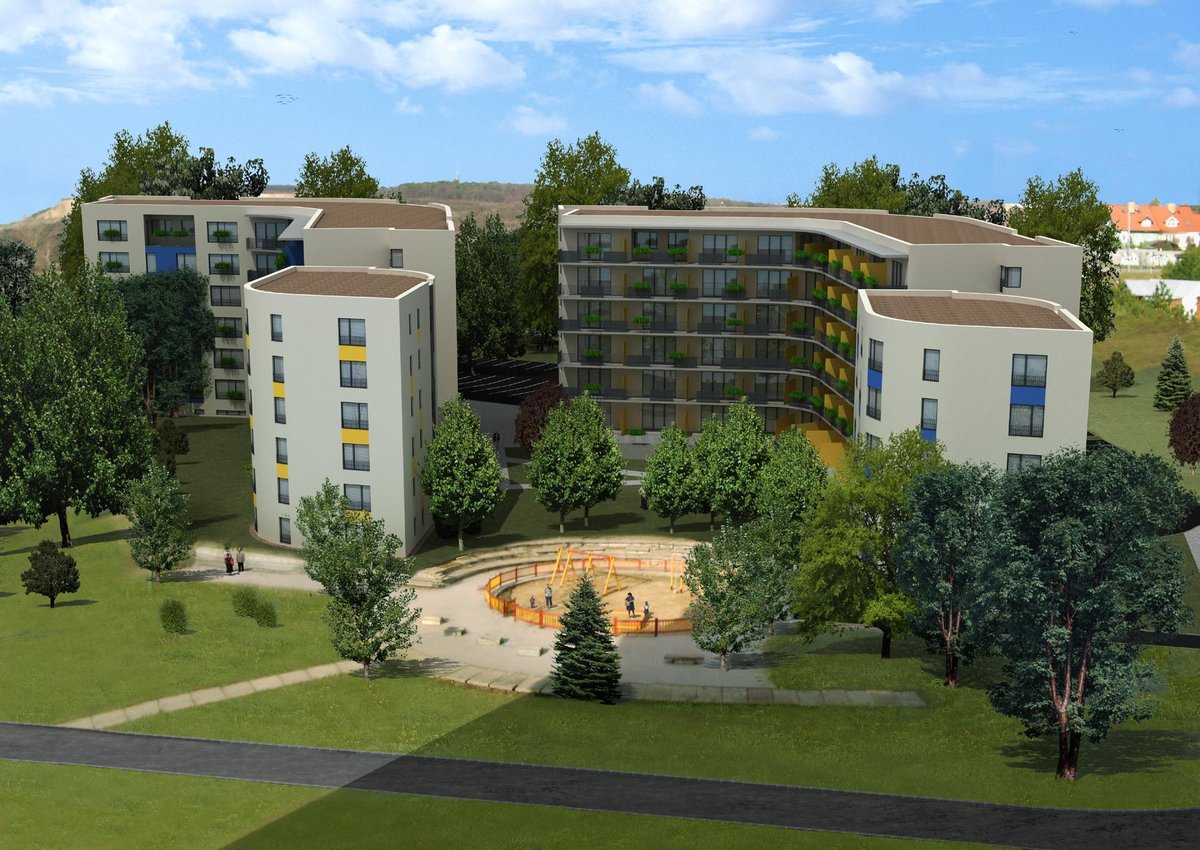 Zástavba je tvořena novostavbami čtyř bytových domů umístěných do bloků A,B,C,D.