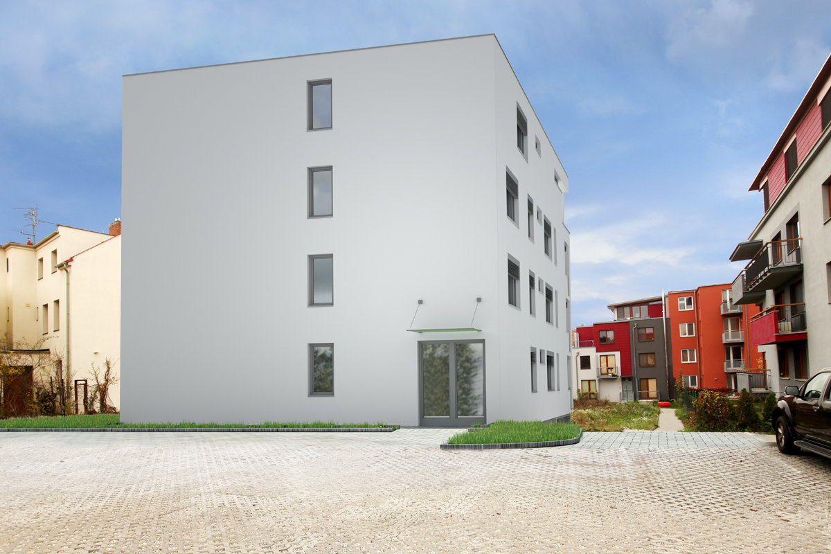 Nadzemní podlaží budou určena k bydlení. Jednotlivé byty budou přístupné z centrálního schodiště, které se nachází uvnitř objektu. Přístup do domu je řešen z ulice Červený kopec přes parkoviště areálu Rustical.