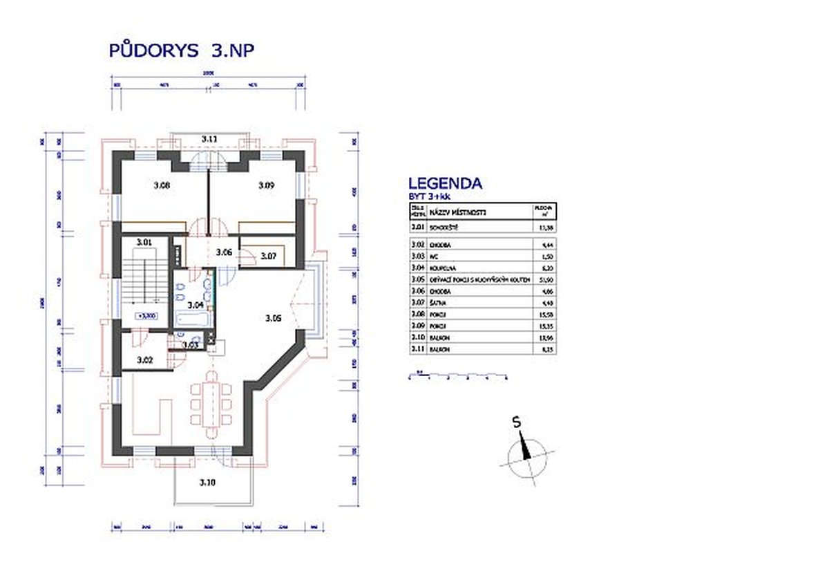 V bytovém domě budou umístěny celkem 4 bytové jednotky, v každém podlaží 1 bytová jednotka. V suterénu stavby bude garáž pro parkování vozidel uživatelů bytových jednotek (celkem 3 parkovacích stání), jedno parkovací stání bude na vlastním pozemku. Dále bude v suterénu umístěna technická místnost.