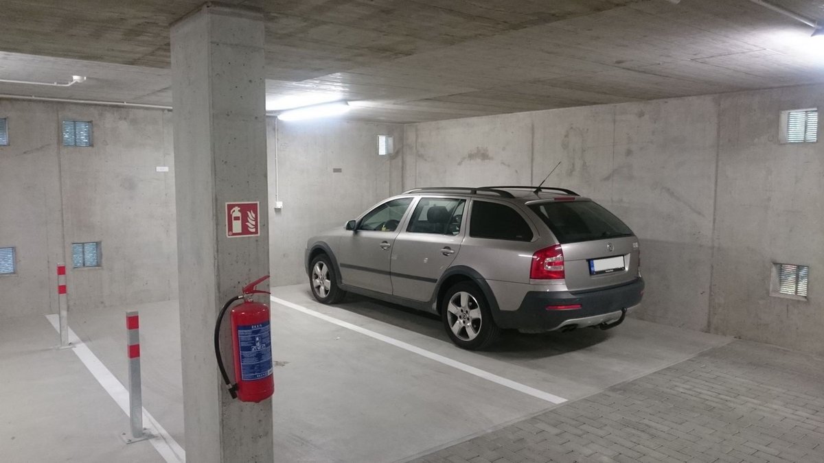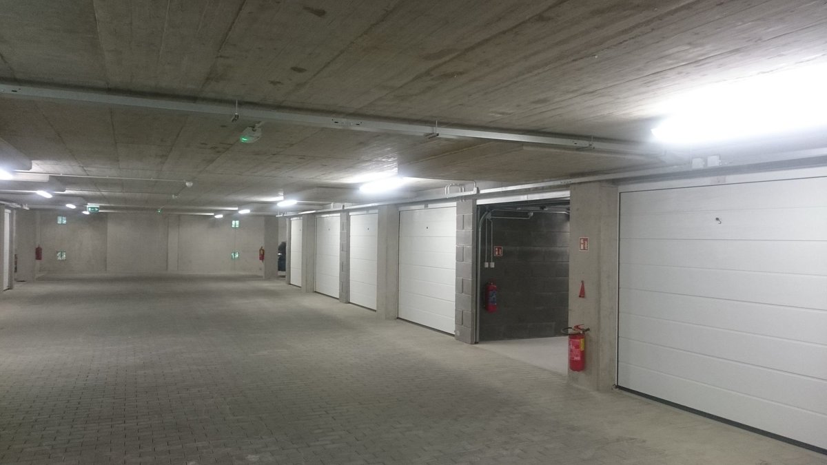 Vrata do objektu i vrata jednotlivých garáží jsou na dálkové ovládání. Plocha garáží cca 16,5 m2 a plocha parkovacích míst 14,0 m2. Každá garáž a parkovací místo má vlastní elektrickou zásuvku s podružným měřením.